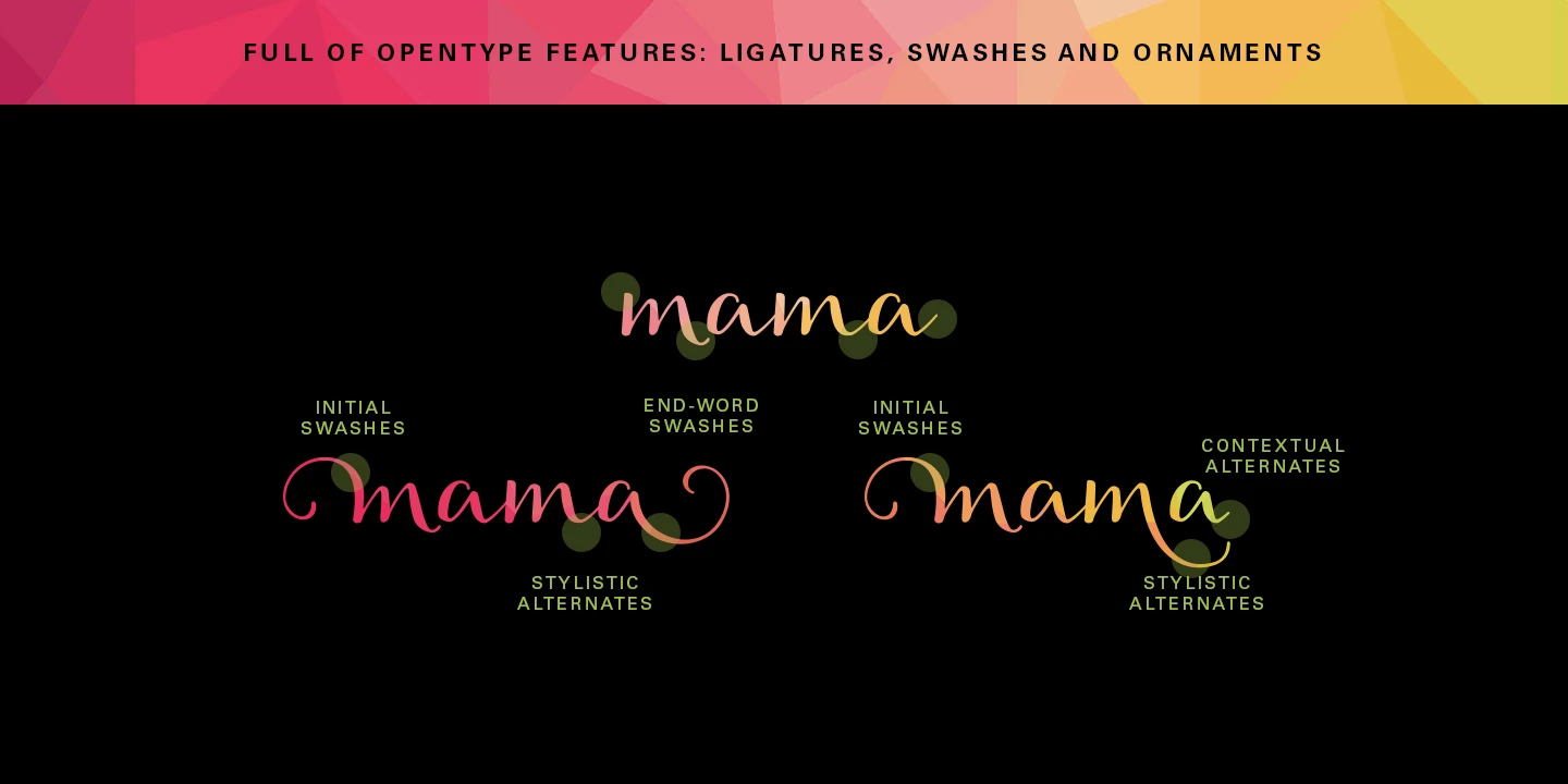 Allegretto Script is a modern calligraphic typeface with an elegantly playful style. The liveliness and movement was inspired by Mozart’s “Rondo Alla Turca” and his other compositions which played with the allegretto or moderately fast tempo. The font contains more than 1000 glyphs — each letter in the typeface has a few different swashes — assuring you that your words will be infused with originality and a special hand-lettered quality.