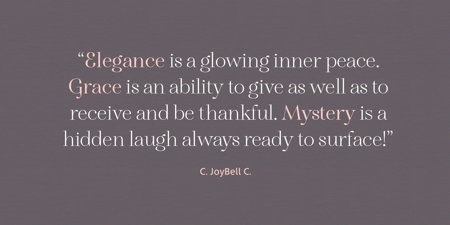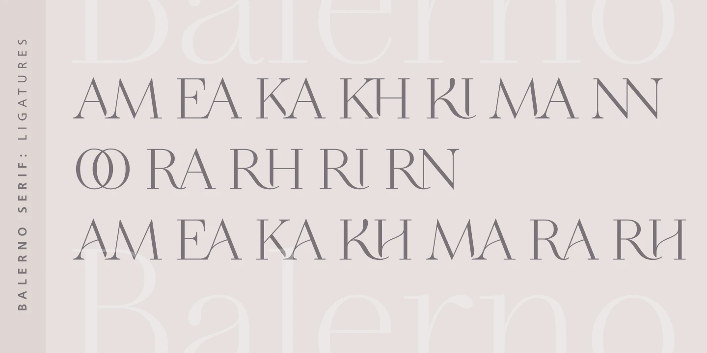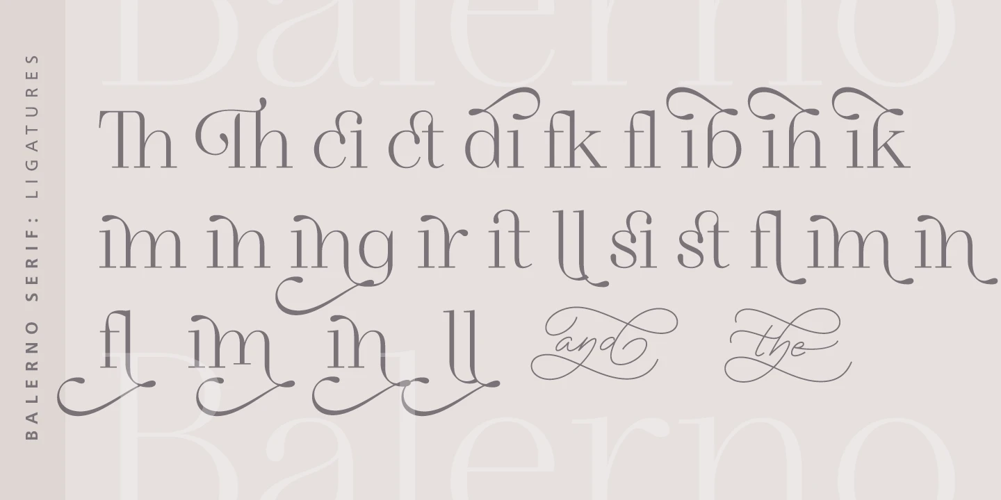 Balerno is an elegantly modern Didone serif with a twist. The added enhancement of ligatures, alternates, and swashes adds versatility beyond the genre and opens up the family to other possibilities. This family could gracefully add panache to a wide range of design projects, from seasonal greeting cards, fashion magazines, wedding invitations, skincare websites, social media branding, and more.