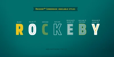 | Rockeby Script Stencil Family Styles included • Light • Regular • Bold • Black $95.99 |